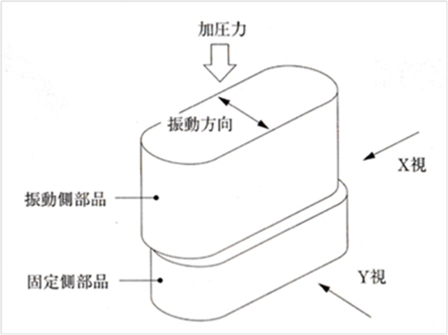回転摩擦溶着法は接合強度が高く、生産性が高いため広く使われているが、溶接部が円環状でないと接合できない。多様な形状の溶接面に対応するには摩擦運動を回転以外の運動に変えなければならない。そこで図14、15のような運動が考え出された。本節ではこれらを総称して「振動摩擦溶着」として扱う。