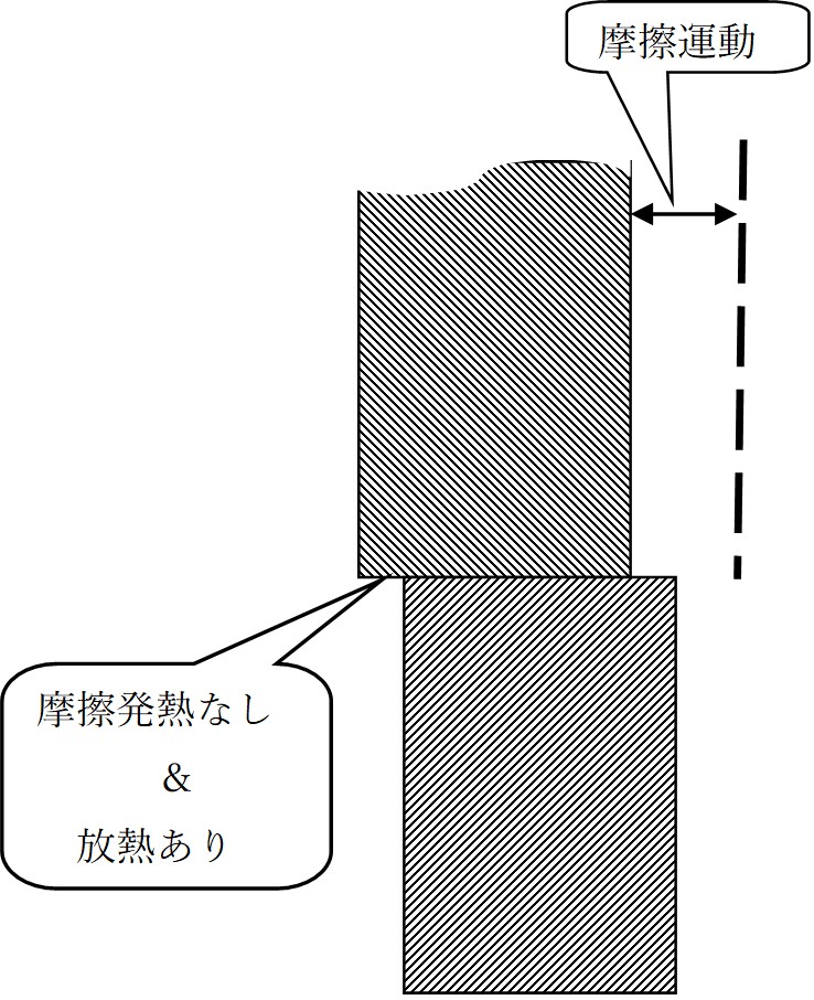 図11に示すように1対の円筒を中心線方向に溶着することを考えてみよう。接合しようとする面を合わせ、加圧しながら一方の円筒を回転させる。すると摩擦熱で接合面が発熱し、やがて溶融する。溶融したら回転を止め、冷却すれば溶着が完成する。回転運動が熱に変換されたことになる。この溶着法を回転摩擦溶着あるいはスピンウエルドという。