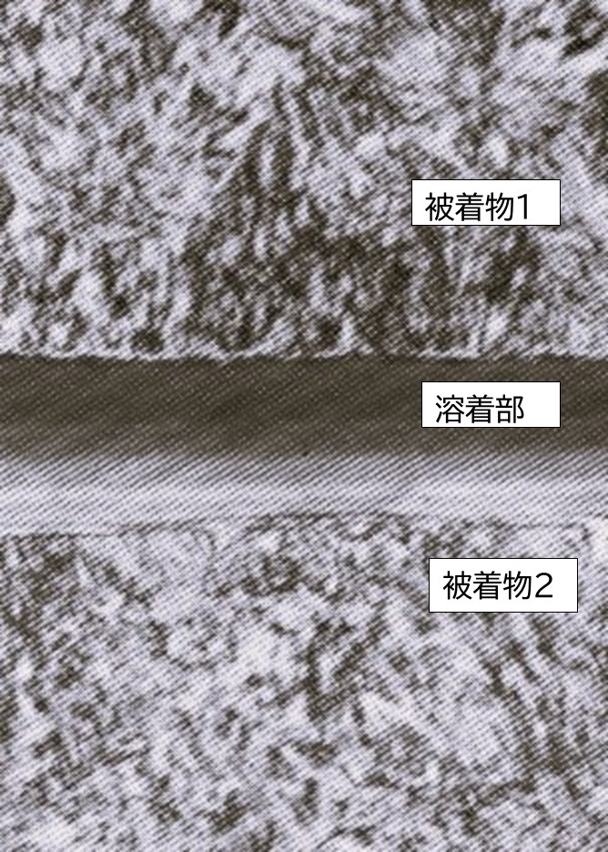 例えば図27は結晶性材料の接合部断面の偏光顕微鏡写真だ。偏光観察は分子配列の様子が分かる。溶着時に溶融しない部分は本来の結晶構造が保たれている。これに対し一度溶融し固化した溶着部には結晶を見出すことが出来ない。図27は一例なので、溶着条件を変えれば分子配列は変わるが、被着物と同じにすることは出来ない。分子配列は物性に反映する。接合性能を論じる時このことを忘れてはならない。