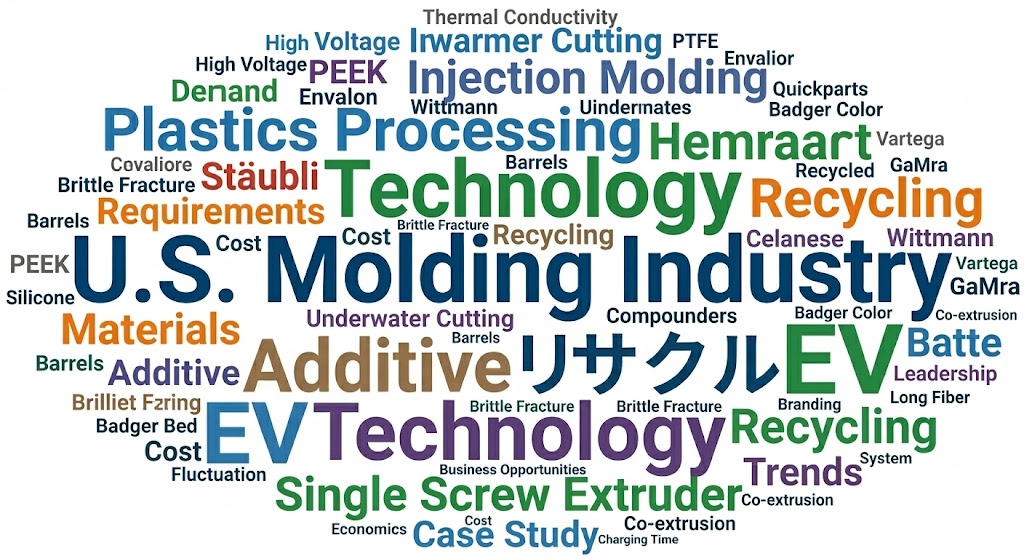 景況回復の背景にある労働力不足、材料価格動向、設備投資の潮流を整理するとともに、ガラス転移温度(Tg)、難燃剤、窒素ガスによる劣化抑制、ホットランナ技術などの重要技術をわかりやすく解説。実例を交えた実務視点の記事。