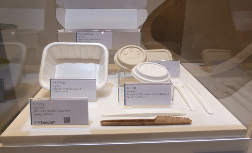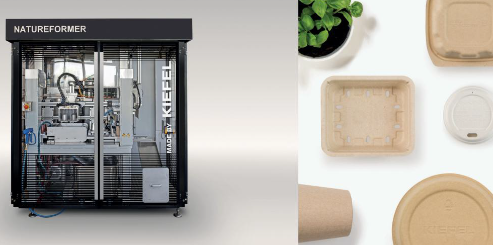 Kiefelの紙、パルプ、ファイバー製でのフォーマーのNature Former は、有名で、トレイ、蓋材などのサンプルが展示されていた。