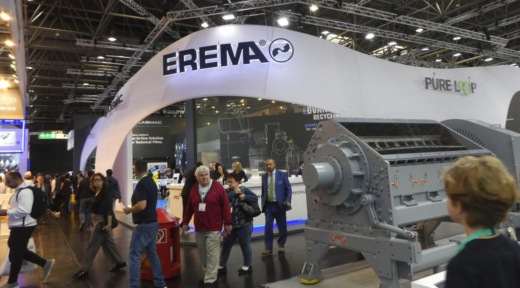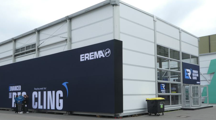 プラスチックリサイクル関連企業でのトップグループのひとつであるエレマグループ(Erema)の様子を示す。