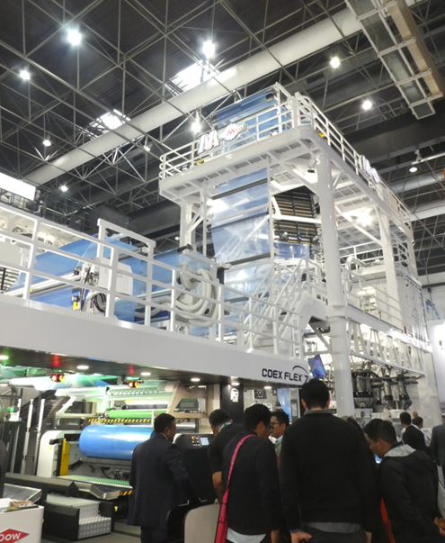 毎回大掛かりな装置の展示をおこなっており、特に3m幅のチルロールをもつキャスト製膜装置は迫力がある。ストレッチラップフィルム用のCAST製膜装置、バリア性 CAST-MDO-PEフィルムのCAST製膜、それを用いたパウチの事例等のサンプルが多数展示されていた。