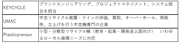 表に収めた企業以外に、パートナー(関連会社)という位置づけにあるのが、リンドナー・ウォッシュテック(Lindner Washtech)である。破砕後のプラスチックフレークの洗浄・分離・乾燥工程を担う装置を提供し、エレマ本体のリサイクル工程装置の前工程を受け持つ形になる。